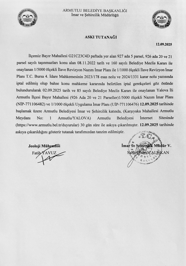 926 Ada 20 Ve 21 Parseller İmar Planı (Askıya Çıka...